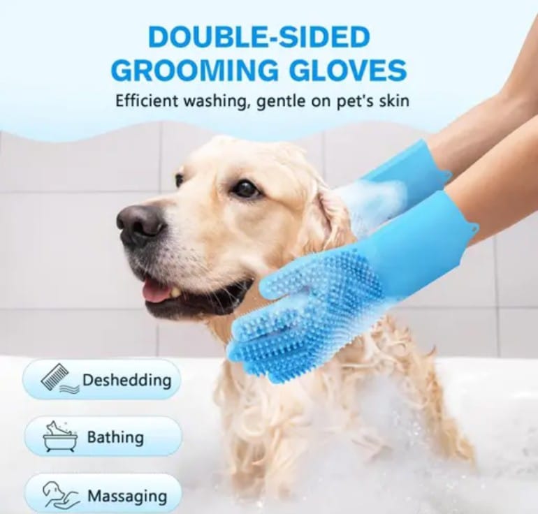 This soft silicone scrubber glove gently removes loose fur, dirt, and tangles while giving your pet a relaxing massage. It's perfect for dogs & cats of all coat types β and makes grooming fun for both of you! πΎ